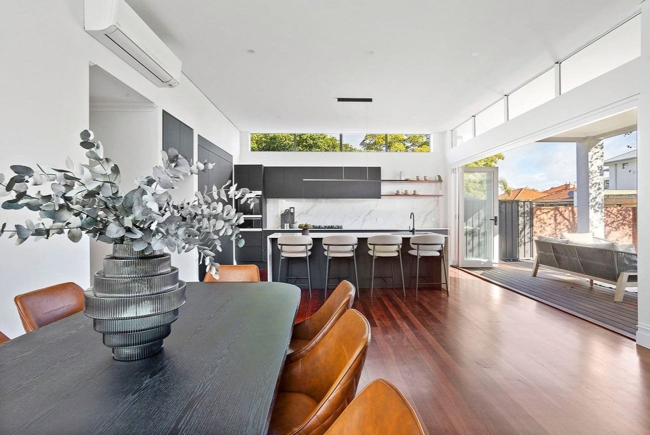 We designed a generous rear extension to introduce a new open-plan living area — bringing modern function into this character-rich home. The addition features soaring 3-metre ceilings that mirror the original height of the 1930s build, allowing the transition from old to new to feel seamless and intentional.